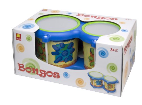 | 5 of 5 people found the following review helpful: Amazon Verified Purchase( What's this?) This review is from: Edushape Bongos Musical Toy (Toy) I will stress this from the beginning - if you pay more than $5 for these, you've paid too much. $5 might even be too much. Absolutely terribly quality, cheap, crummy bongos.I bought these for my son's birthday in September - it wasn't until I actually "opened" the gift at his birthday party that I realized that I had spent money on something akin to what was sitting in our recylcing bin. I don't know what sticks are being talked about, my order didn't come with any. Another review said these were made from cardboard about as thin as a cereal box - that's about right if not a little generous. The construction is lousy, and easily pulled apart. See those little white supports in the picture? Those pull right out. How safe. True, if you beat it with something harder than your hand you get a better sound, but again, like another review said, it's comparable to a wooden spoon on tupperware. You can get much better toy bongos/drums for this price... Read more 1 of 1 people found the following review helpful: By surly "surly" (detroit) - See all my reviews Amazon Verified Purchase( What's this?) This review is from: Edushape Bongos Musical Toy (Toy) 1. These are made of cardboard about the thickness of a cereal box and do not appear very durable.2. They do not sound like drums. They dont sound like much at all and are less entertaining than tupperware and a wooden spoon. 3. There are no drumsticks in my package but I didn't expect any as they are bongos. You can get somewhat of a drum sound using something harder than your hand. I might make some mini sticks and see if my son likes these any better. 4. The box states 3 and over and the item description states 1 and older. All in all I think these were a waste of money and would send them back but dont want to waste the gas. They were already shipped all the way from Israel. Surely we can make as bad a product here at home. I recommend buying something else or have fun making your own as they would be at least as good. By Amazon Verified Purchase( What's this?) This review is from: Edushape Bongos Musical Toy (Toy) I was shocked to find that the body of the drums are made of cardboard that is formed into a circle and loosely secured with tabs that fit into slots. My nearly two-year-old was able to tear them and pull the cardboard out of the tabs within minutes of opening them. I was very disappointed in the quality of this product. I should have gotten the wooden ones, which were about the same price. |
