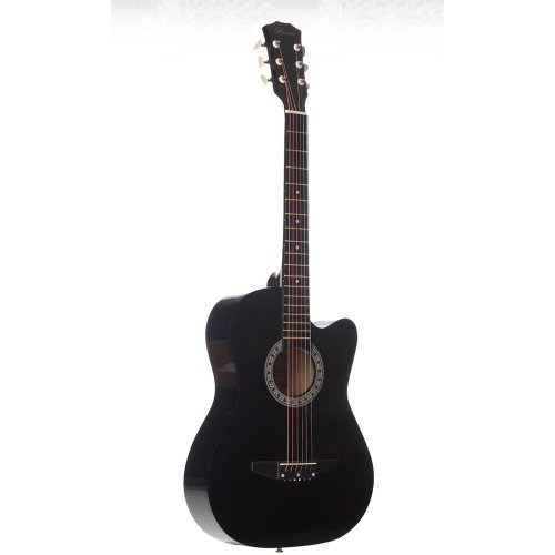 The Barcelona AC38 is a small-scale acoustic guitar with a cutaway design for easy access to the higher frets. The smaller size makes it perfect for people of a smaller build and children. Made with quality woods and beautiful finishes, these guitars look good and provide a super-affordable option for anyone wanting to try their hand at the acoustic guitar.The chrome hardware withstands wear, tarnish, and falls alike without affecting the tuning and intonation of your instrument. A sleek blue finish gives the guitar a very professional look. Finally, it makes a great centerpiece for your home or your kid's room. Considering all these features, it's a wonder we are able to sell this model for this price. If you're looking for a good deal on an entry-level acoustic guitar, the Barcelona AC38 is an ideal choice.